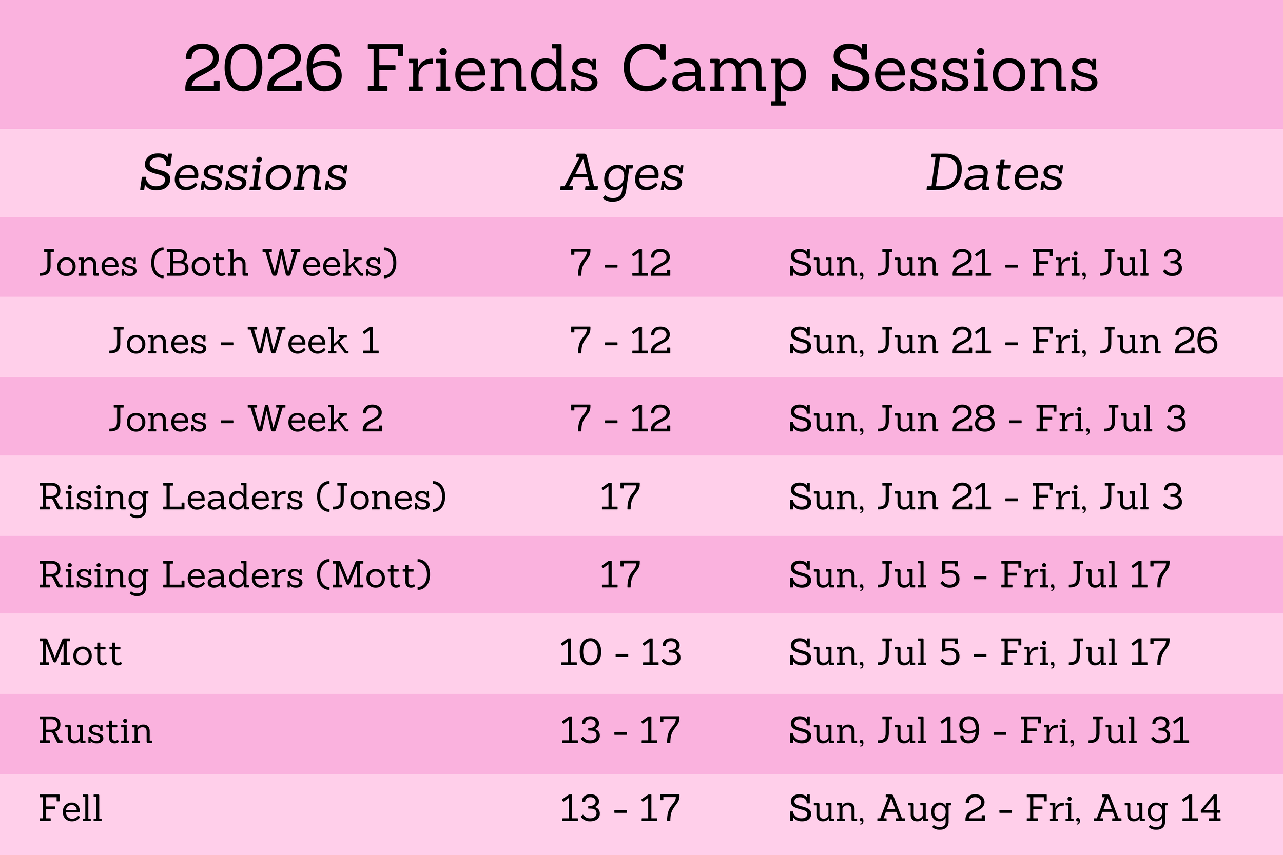 Registration for the summer of 2026 will open at noon on Saturday, November 8th, 2025. Please contact our office with any questions about the registration process, session options, or camperships.